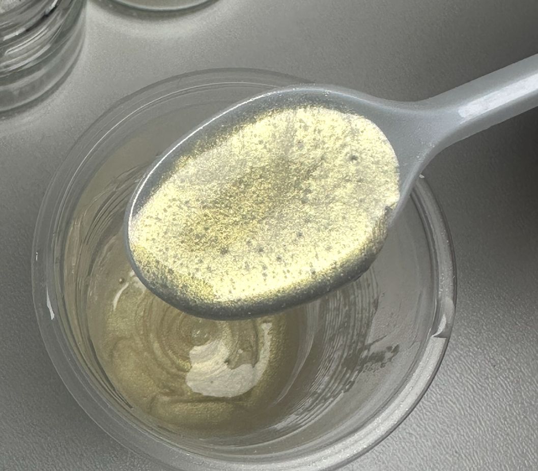 Сухий перламутровий барвник “Білий золото інтерферентний” 25 мл — витончений пігмент із білою базою та теплим золотим переливом, який проявляється залежно від освітлення та кута огляду.