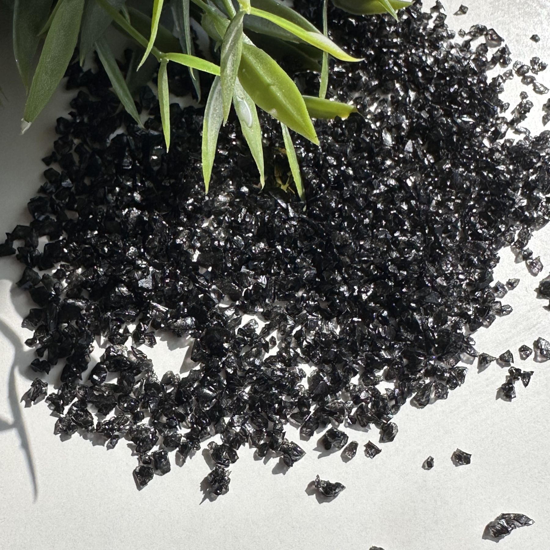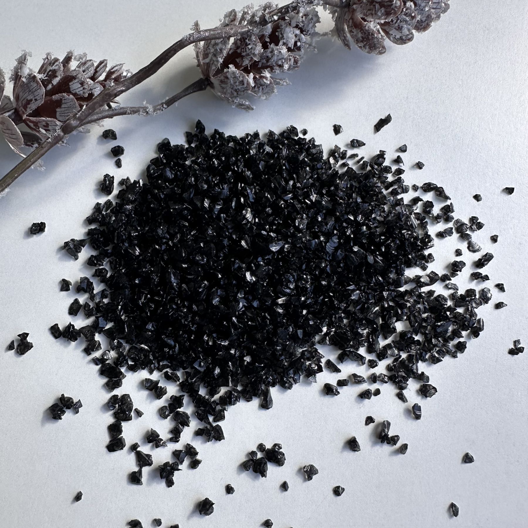 Чорна скляна крихта тонована (фракція до 2 мм) — універсальний декоративний наповнювач для створення стильних та виразних виробів. Ідеально підходить для оформлення середин у виробах з епоксидної смоли, а також для інкрустації свічок і різноманітного декору.