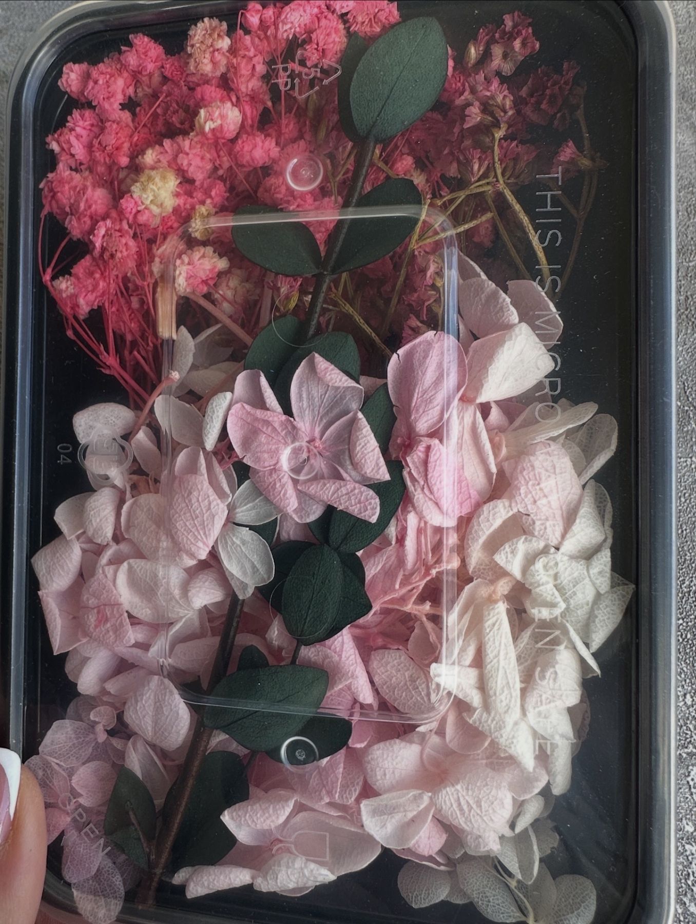 Набір рожевих сухих квітів у пластиковому боксі для декору, свічок та епоксидної смоли