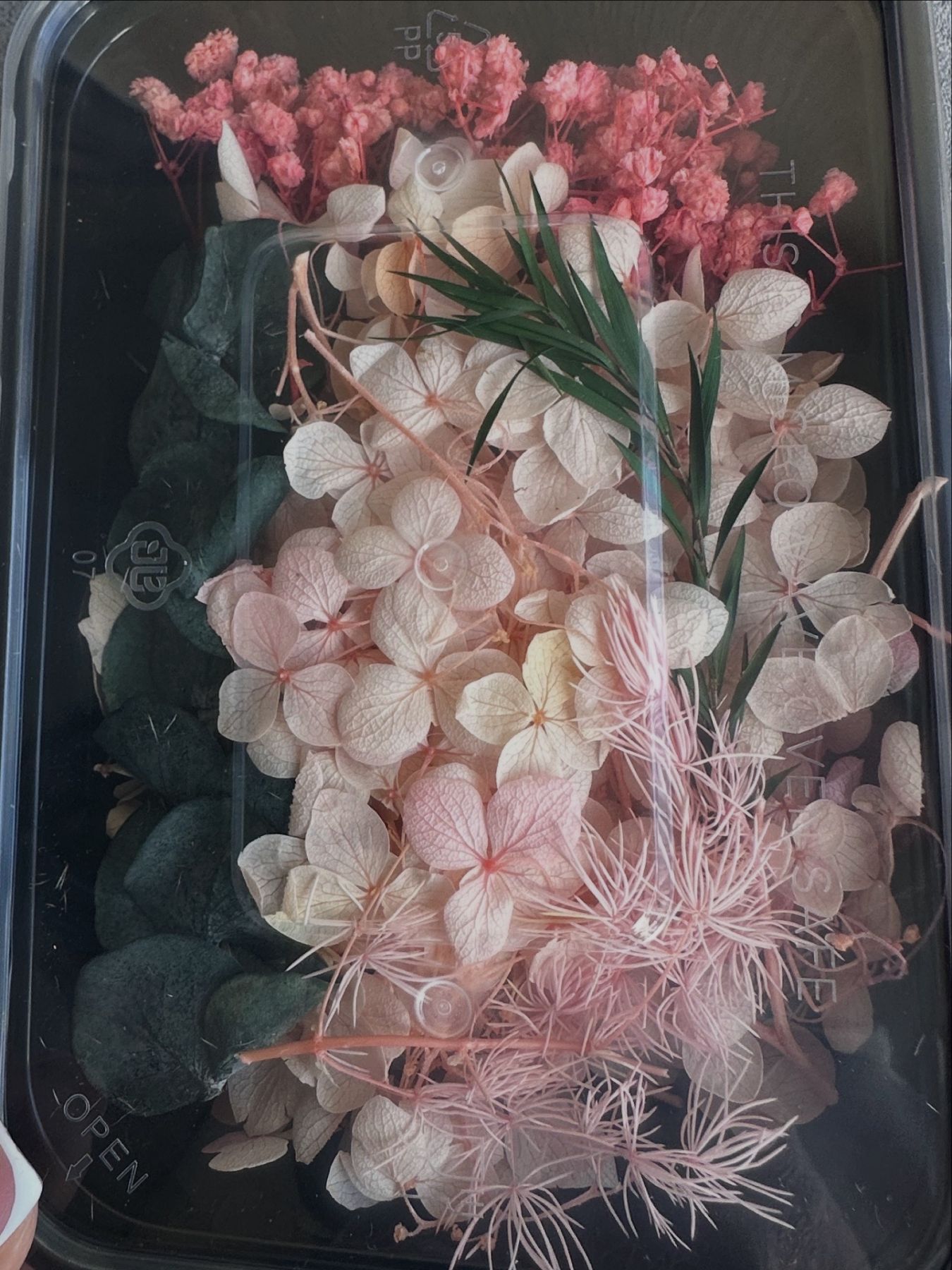 Ніжний набір сухих квітів у рожевих відтінках — ідеальне рішення для створення витончених та стильних виробів ручної роботи. Квіти дбайливо висушені, зберігають природну форму та колір, що робить їх ідеальними для роботи з епоксидною смолою, свічками та різноманітним декором.