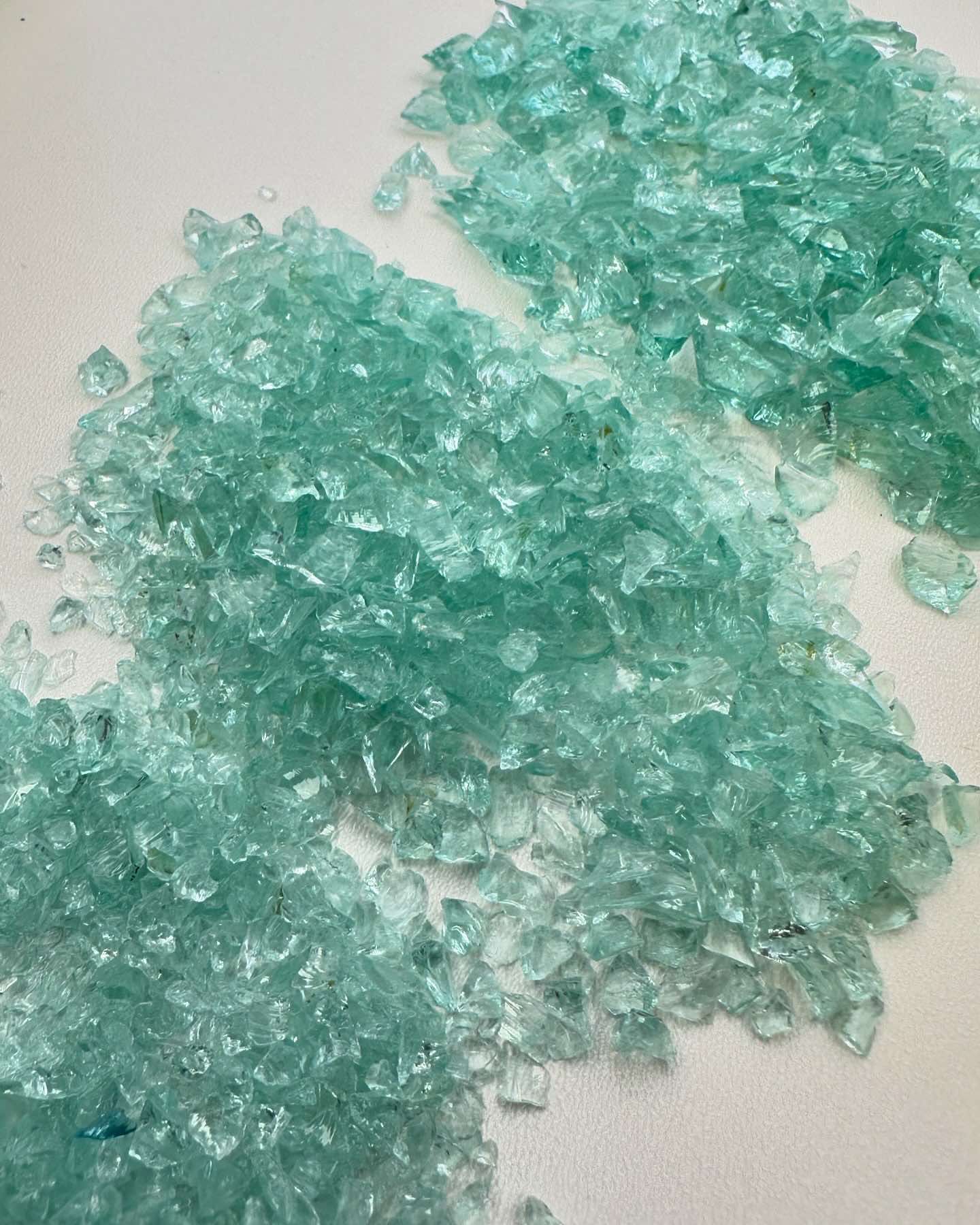 Скляна крихта натуральна світло-бірюзова, фракція 2–3 мм / 3–5 мм / 5–8 мм (200 г)