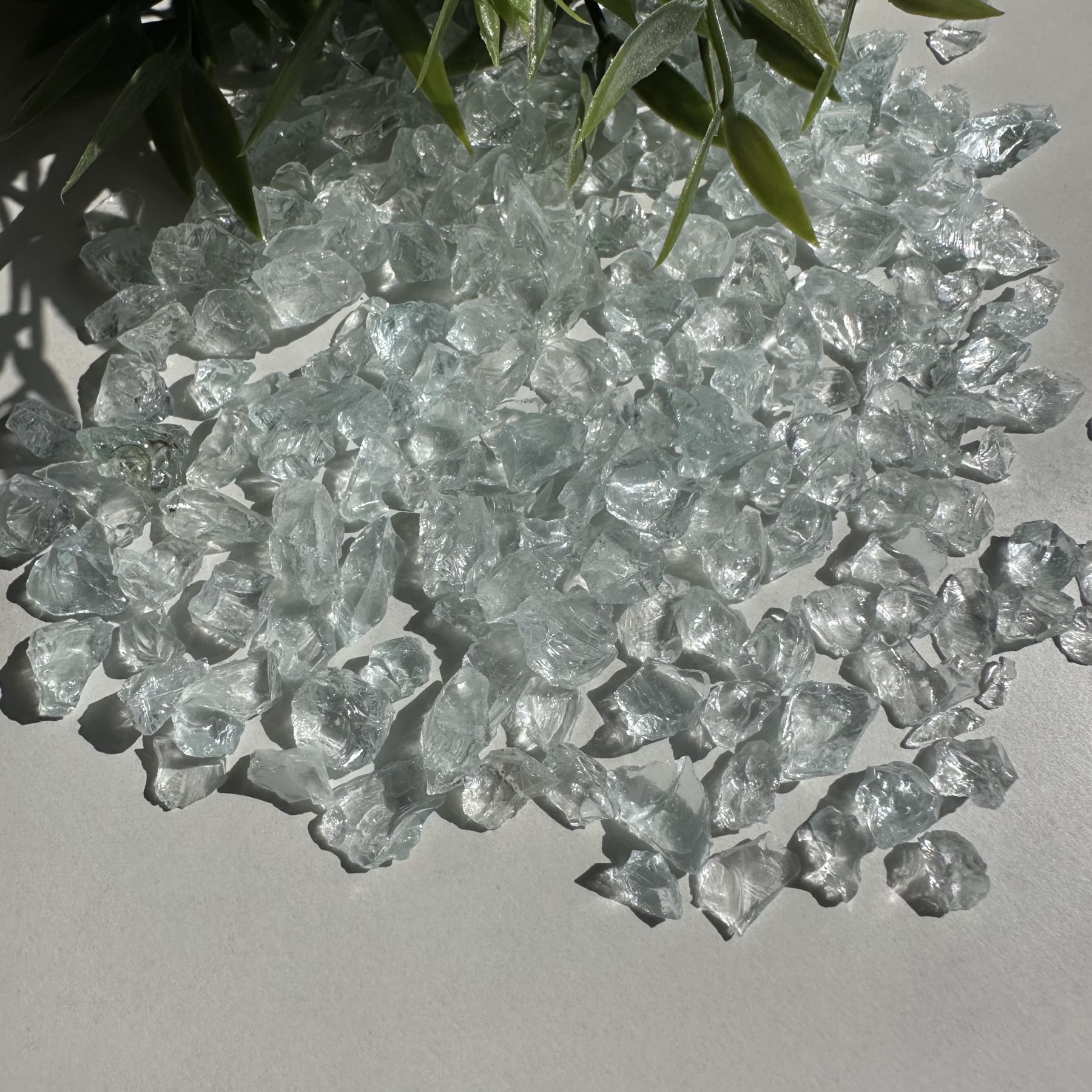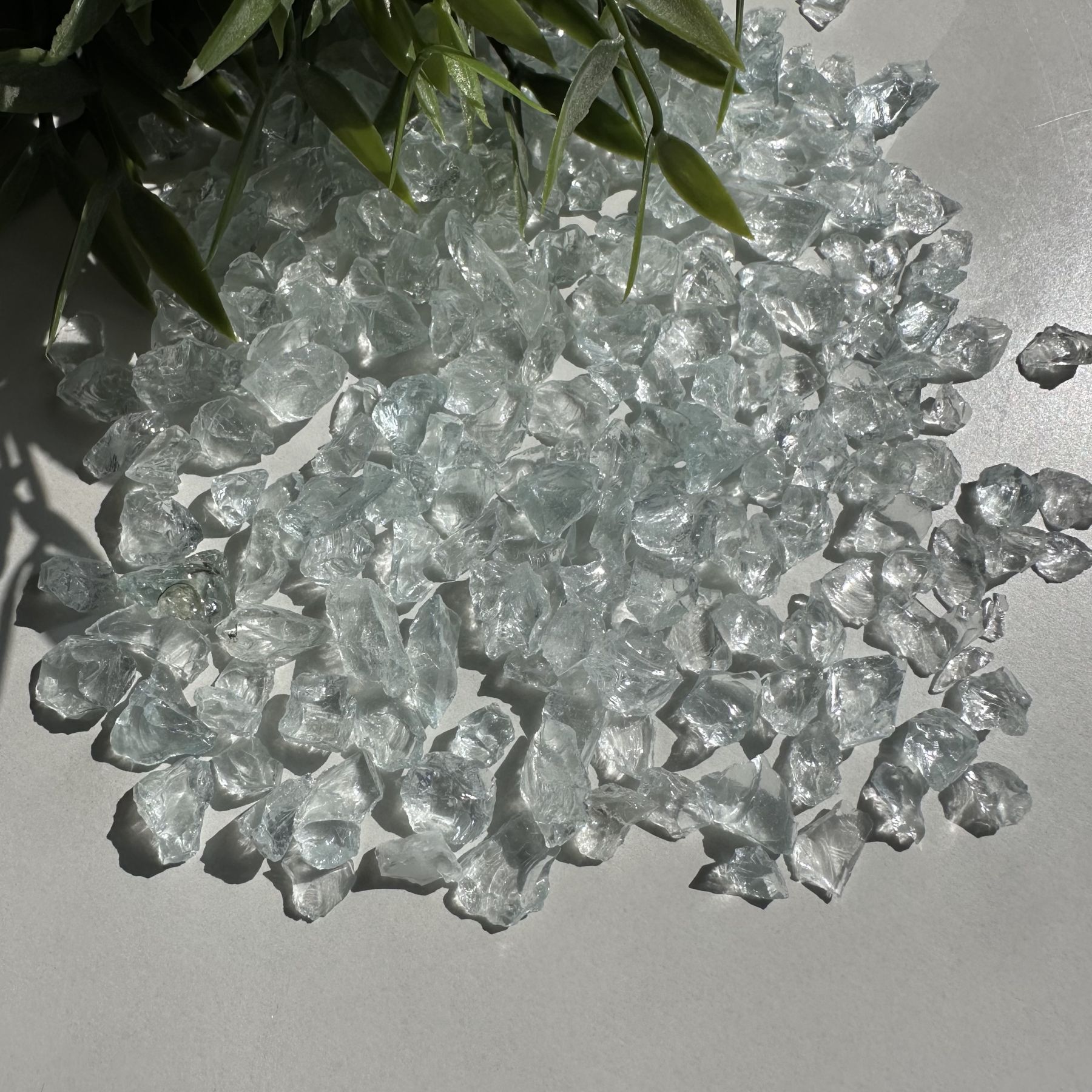 Скляна крихта «Топаз» — витончений декоративний матеріал, прозора з легким блакитним відтінком. Завдяки крупній фракції 5–8 мм ідеально підходить для створення об’ємних і виразних елементів у декорі.