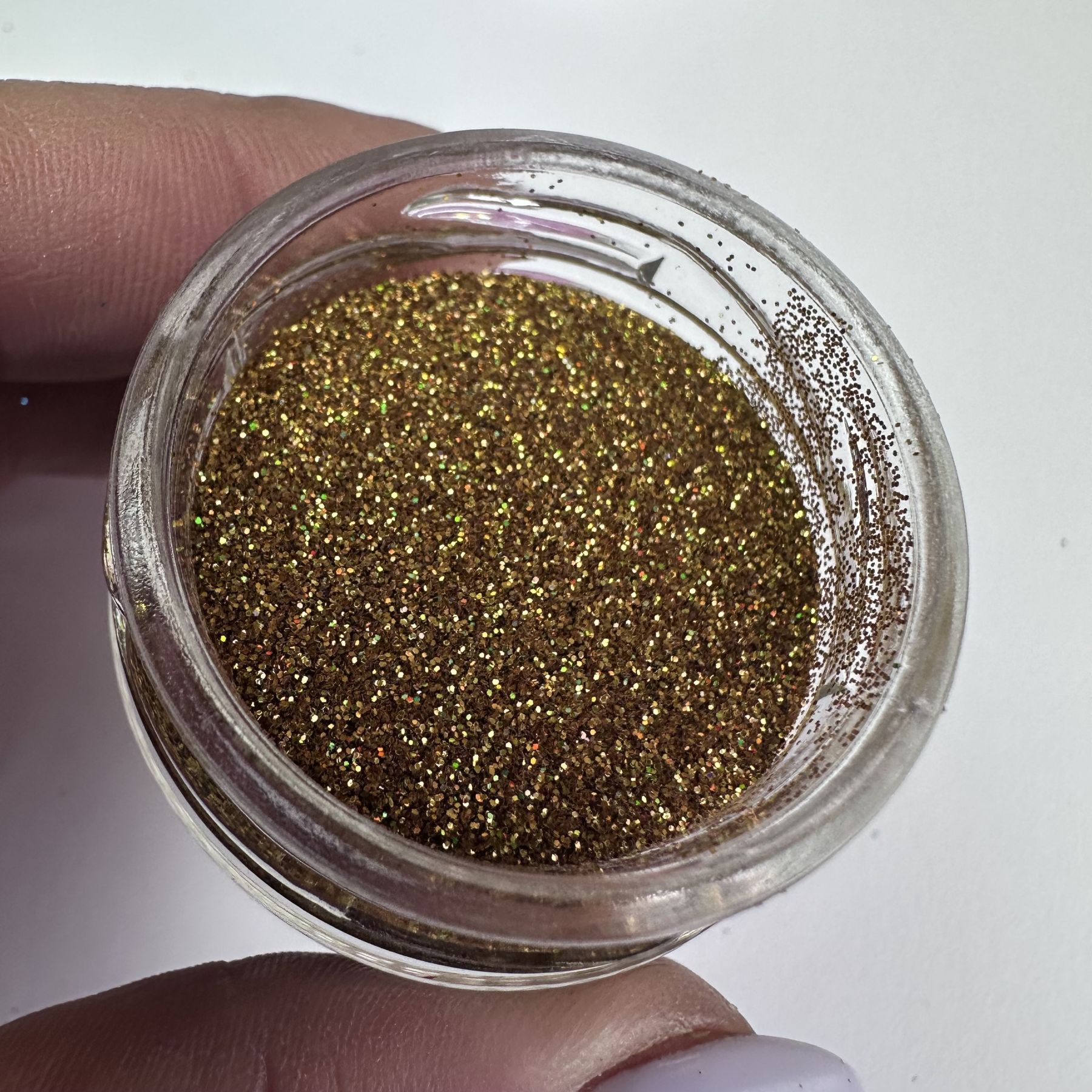 Дрібний декоративний глітер із ефектом голографічного золота, який створює яскраве багатовимірне сяйво з переливами на світлі. Ідеально підходить для епоксидної смоли, свічок, гіпсу, декору, лаків та творчих handmade-проєктів.